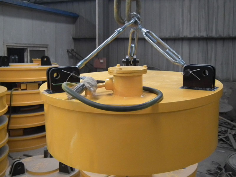 A: 圓形的起重電磁鐵可以用來提升廢鐵,鐵屑,鋼球,鐵罐等其他類似物料。